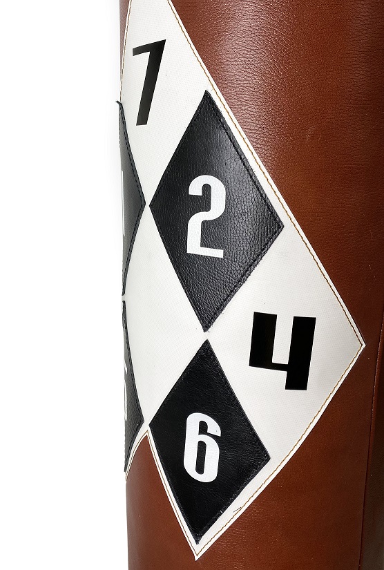 Мешок выполнен из натуральной кожи.В горловину мешка, по периметру, с внутренней стороны вшит обруч из полосы металла, который предотвращает деформацию «шапки» мешка в процессе эксплуатации.