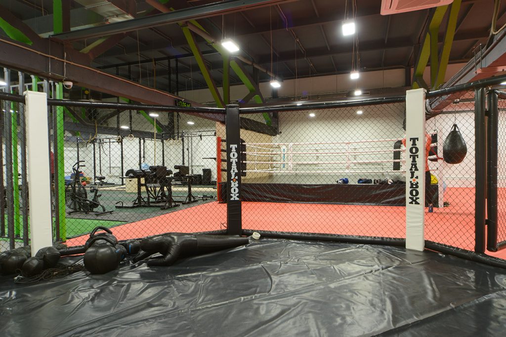 1800 кв.м. «Высшей Лиги» расположились на двух этажах бизнес центра «Модус». Жители города смогут проводить там эффективные тренировки по боксу, кикбоксингу, рукопашному бою, боевому самбо, грэпплингу и ММА в уникальной и просторной бойцовской зоне с использованием высококлассного оборудования и инвентаря «TOTALBOX». В их распоряжении удобный ринг на помосте, большой выбор наших спортивных мешков, боксерских груш и настенных подушек. Для единоборств и MMA в клубе есть ринг восьмиугольный с клеткой и манекены для борьбы. В наличии также комплекты медицинболов и гирь нашего производства.