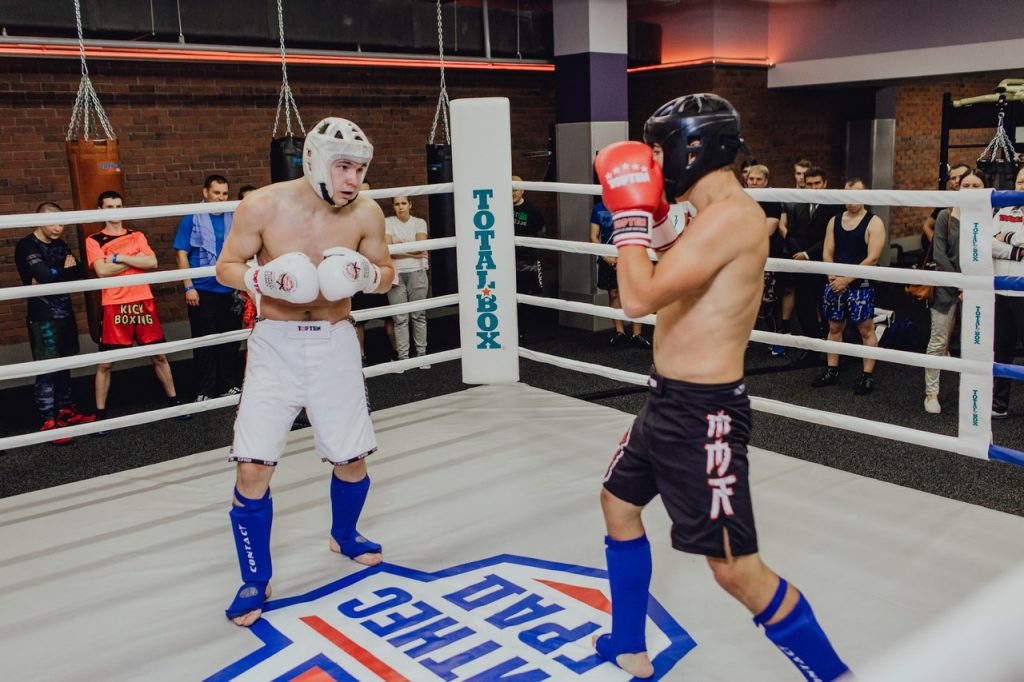 Боксерская зона на 200 квадратных метров была нашей зоной ответственности в период подготовки к открытию клуба. Она оснащена современным, надежным и высококачественным оборудованием «TOTALBOX». Там разместился боксерский ринг на помосте размером 5х5 метров. Причем на нем можно не только тренироваться, но и проводить официальные соревнования, поскольку он соответствует требованиям AIBA (международная федерация бокса). Покрытие ринга выполнено с дополнительным индивидуальным оформлением — на него был нанесен логотип «Фитнес Град».