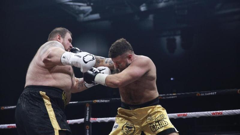 В главном событии вечера на ринге встретились Максим «Топор» Щербаков и Денис Вильданов. Бой весьма колоритных боксеров. У Вильданова, например, прозвище «Большой Папа». Он обладатель самого большого бицепса в России с сокрушительным ударом! Еще бы, с весом 178 кг! И это он еще похудел перед боем на 40(!) кг.