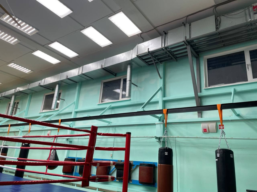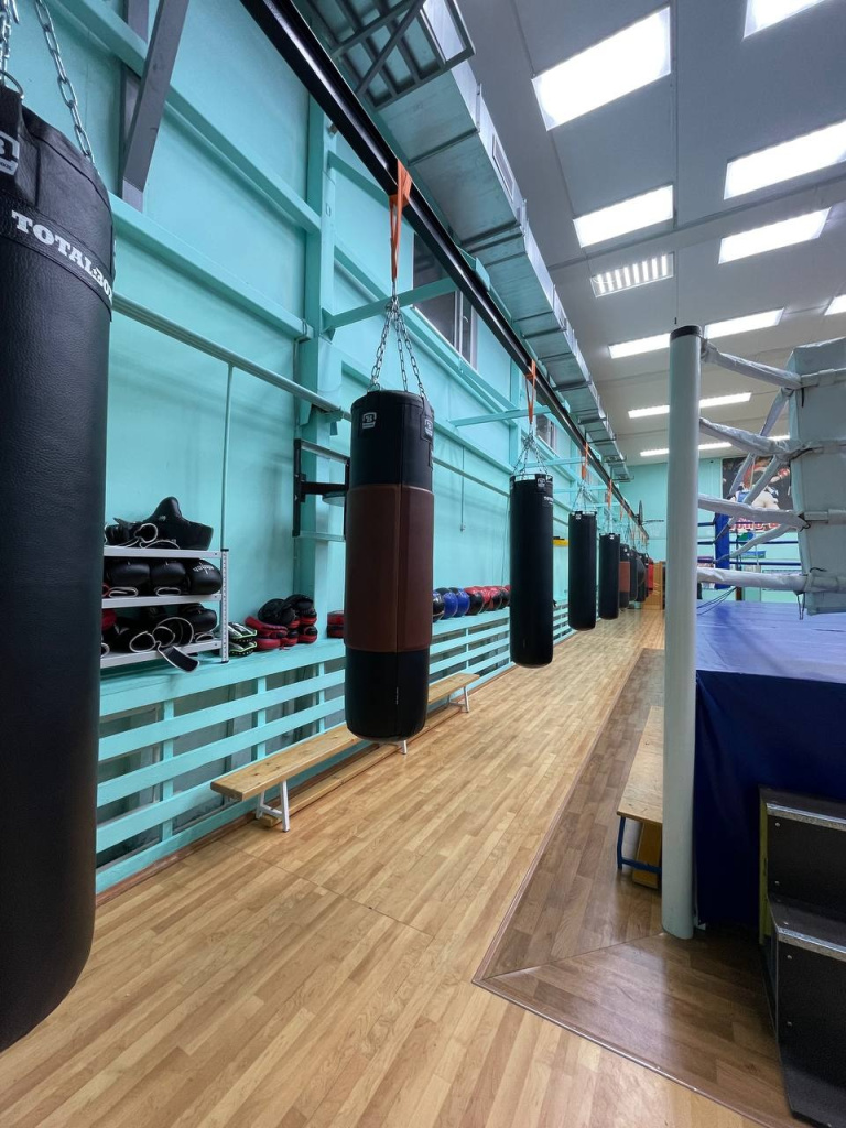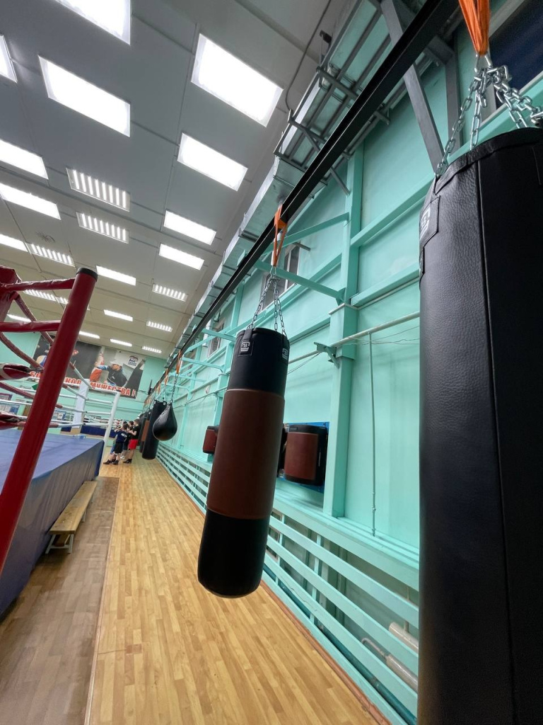 В этой спортивной школе дети занимаются боксом, вольной борьбой и тхэквондо. В ближайшее время их тренировочное место станет еще более комфортабельным. Дело в том, что сейчас все снаряды просто подвешены вдоль стены. Но наша компания уже изготовила и отправила туда каретки для монорельсовой системы, которая позволит гибко настраивать и размещать подвесное оборудование.
