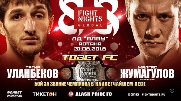 31 августа в столице Казахстана в Астане состоится турнир «Fight Nights Global 88». Местом проведения единоборческого шоу станет местный «семитысячник» — Ледовый Дворец «Алау». Главный бой вечера – титульный поединок за звание чемпиона в наилегчайшем весе, в котором сойдутся россиянин Тагир Уланбеков (действующий чемпион промоушена) и претендент из Казахстана Жалгас Жумагулов.