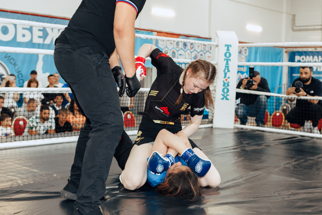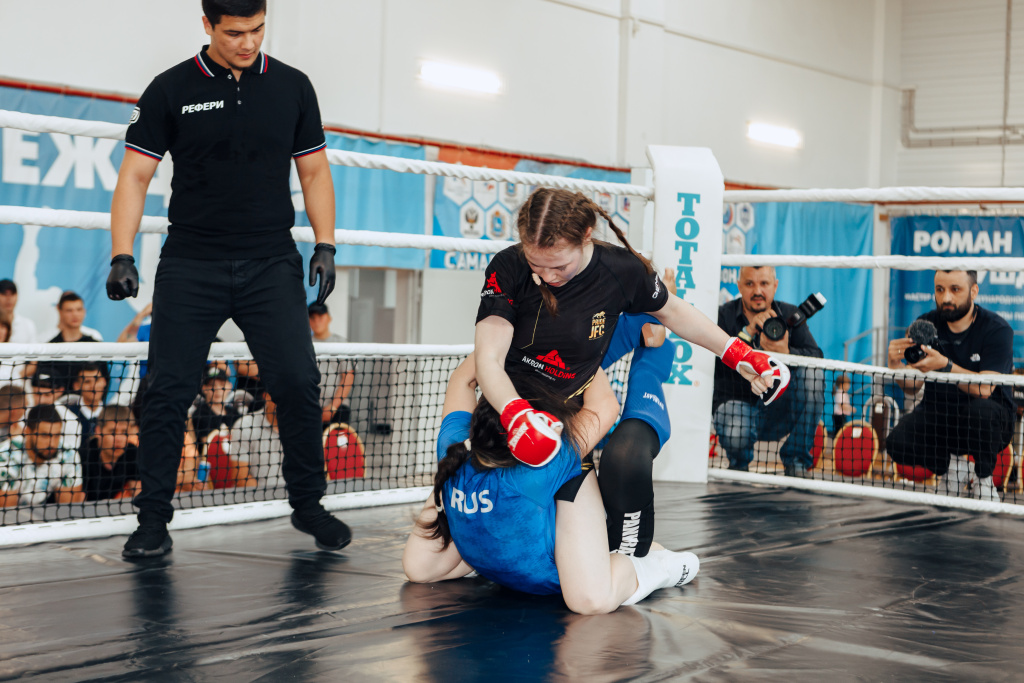 Прошло десять мужских поединков и один женский бой – Анастасия Артемьева VS Ирина Гоппе. В рамках лиги, поединок среди девушек был организован впервые. В результате наша землячка из Самары, чемпионка области по грепплингу Анастасия Артемьева одержала победу над соперницей из Саратова.